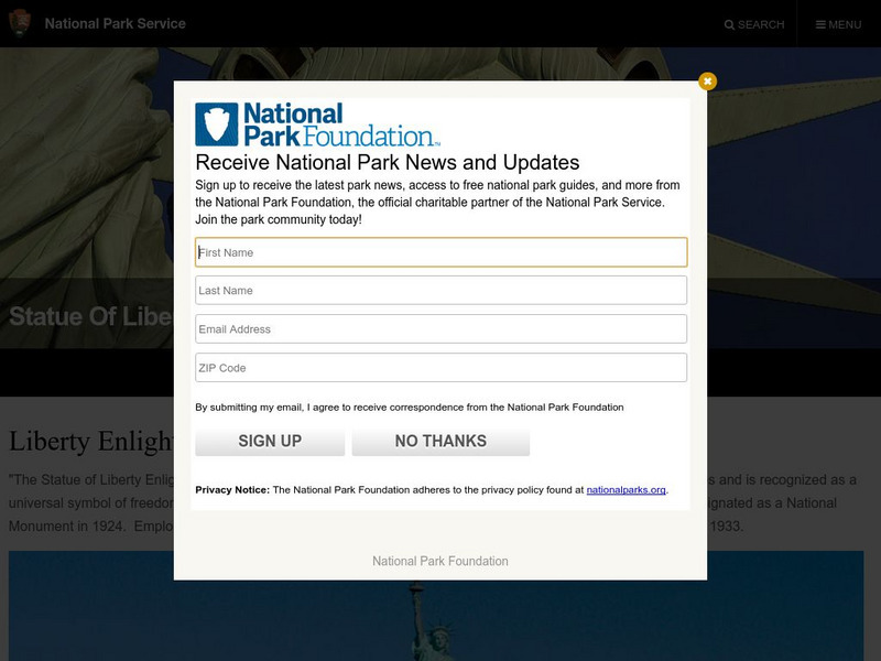 This site provides history and information about the Statue, including information about visiting, the statistics and measurements of the Lady, and historical background of France/U.S. relations. Be sure to click on the "Handbook" link...