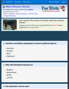 For this online quiz worksheet, students answer a set of trivia questions about horses. Page has a link to submit answers for review.