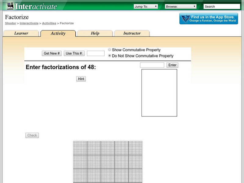 This site provides great practice on the concept of prime factorization. Students can first learn about the topic by watching a step by step instruction video that also points out areas of concern. Finally, students can practice their...