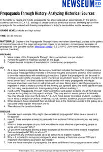 Working in teams, pairs, or individually, scholars select one resource from a gallery of historical sources and consider which examples might be considered propaganda, the techniques used to persuade audiences, and evaluate how the...