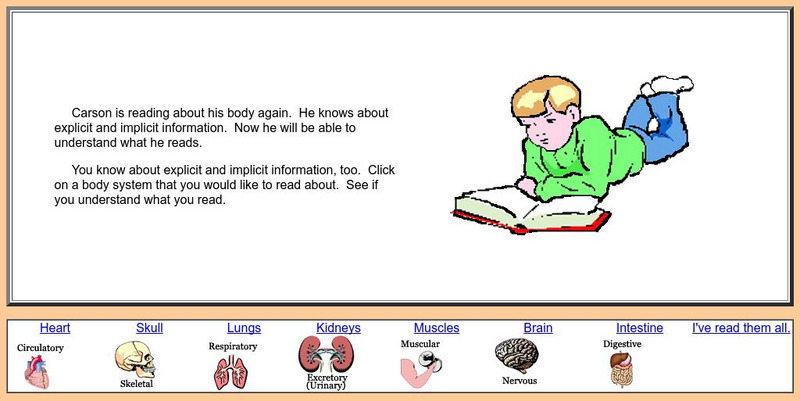 Explicit and implicit information are reviewed in this lesson. Students will choose a part of the body and then read a short passage that explains what it does. Students will answer three questions over the passage and then determine...