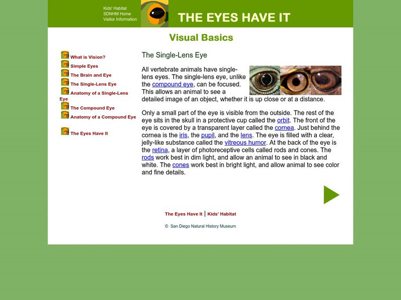San Diego Natural History: Kids' Habitat: The Eyes Have It Single Lens Eye