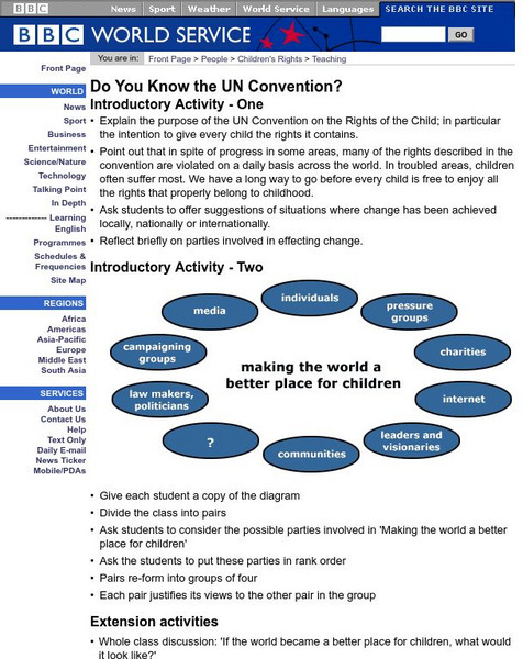 The United Nations is working hard to develop a world in which children are valued and safe. As a part of this mission, the U.N. has developed some learning activities to enhance students' understanding of the U.N.'s job. Click here to...
