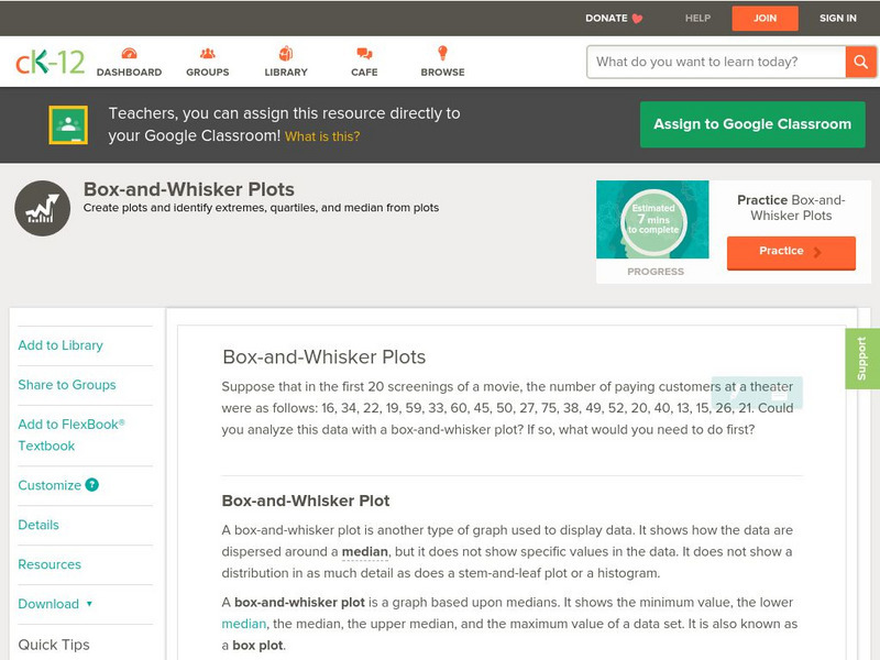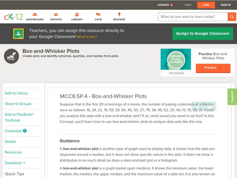 Ck 12: Statistics: Box and Whisker Plots Grades 8 9