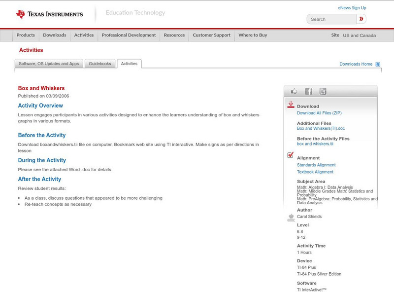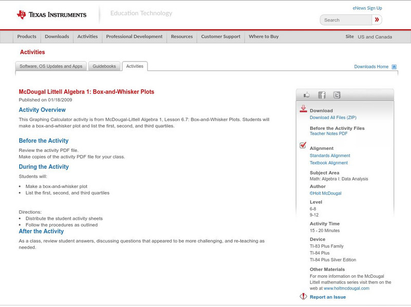 Texas Instruments: Mc Dougal Littell Algebra 1: Box and Whisker Plots