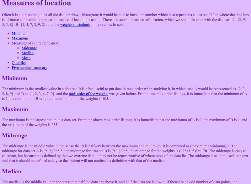 This applet allows the user to investigate the mean, median, and box-and-whisker plot for a set of data that they create.