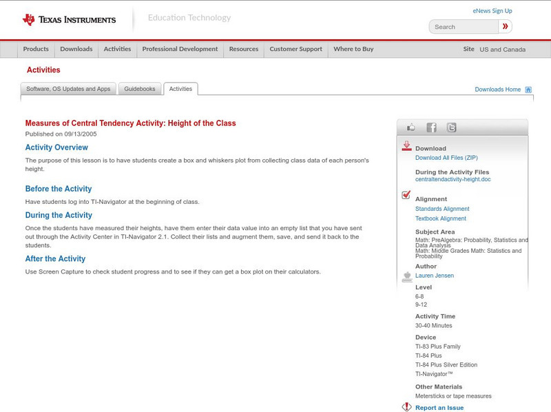 Texas Instruments: Measures of Central Tendency Activity: Height of the Class