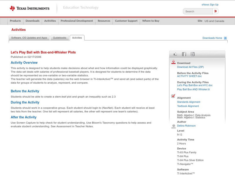 Texas Instruments: Let's Play Ball With Box and Whisker Plots