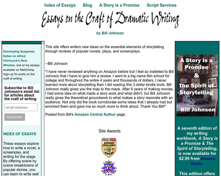 This site, by the author of a workbook on the craft of writing, is filled with essays about many elements of dramatic writing, from the principles of storytelling, to plot development, to character development. There are also numerous...