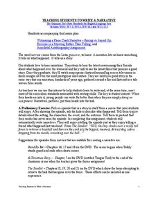 Encourage narrative writing with a clever exercise. Class members watch episodes from movies and describe what happened to a character, including details about the setting, plot, and characters. Writers then craft a narrative about a...