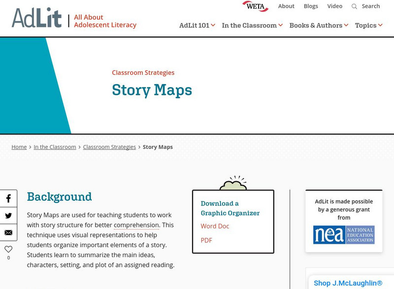 Story Maps are used for teaching students to work with story structure for better comprehension. This technique uses visual representations to help students organize important elements of a story. Students learn to summarize the main...