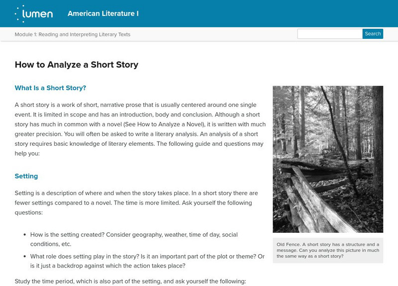 Lumen: Reading and Interpreting Literary Texts: How to Analyze a Short Story