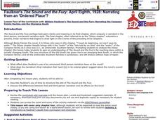 High schoolers analyze a character of Faulkner's The Sound and the Fury to catch a glimpse of a family and the changes they, and the Old South, undergo. The use of time as it relates to the structure of the plot is covered in this...