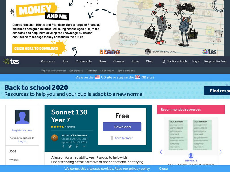 Tes: Teaching Shakespeare: Sonnet 130 Year 7