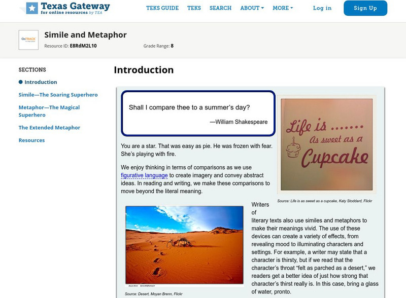 Texas Gateway: Imagery: Simile and Metaphor (English I Reading)