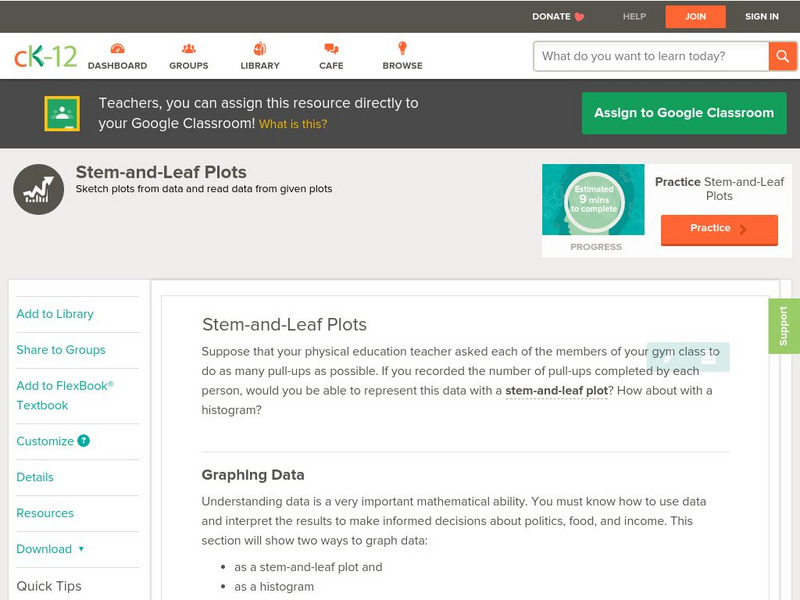 Ck 12: Statistics: Stem and Leaf Plots Grades 8 9