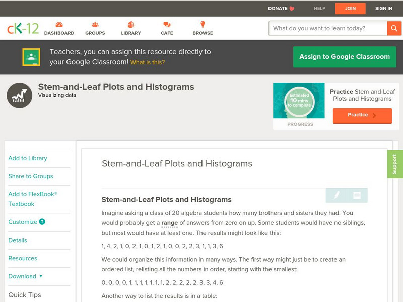 Ck 12: Statistics: Stem and Leaf Plots and Histograms