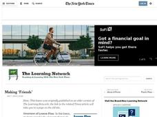 Students read "Fans Gear Up to Say Goodbye to 'Friends'" from The New York Times and discuss the elements of the sitcom 'Friends' that made it such a success. After brainstorming reasons for 'Friends' popularity, students work in groups...