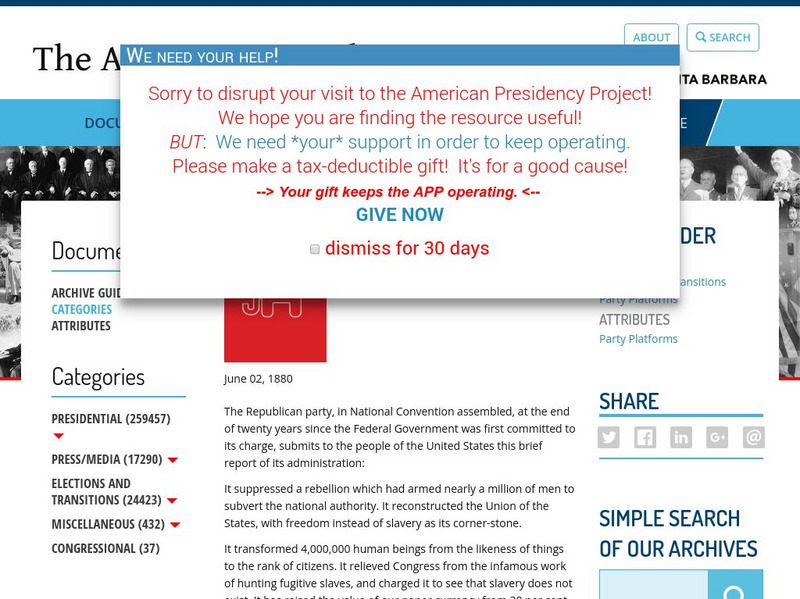 Find the Republican Party Platform for the presidential campaign of 1880.