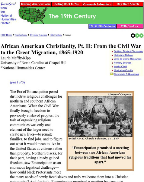 National Humanities Center: Teacher Serve: African American Christianity Pt Ii: From Civil War to the Great Migration