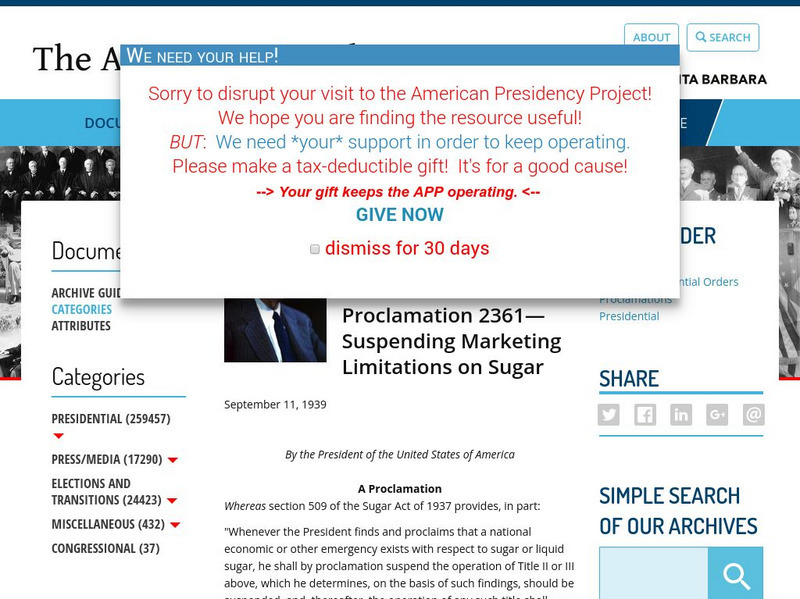 American Presidency Project: Suspending Marketing Limitations on Sugar