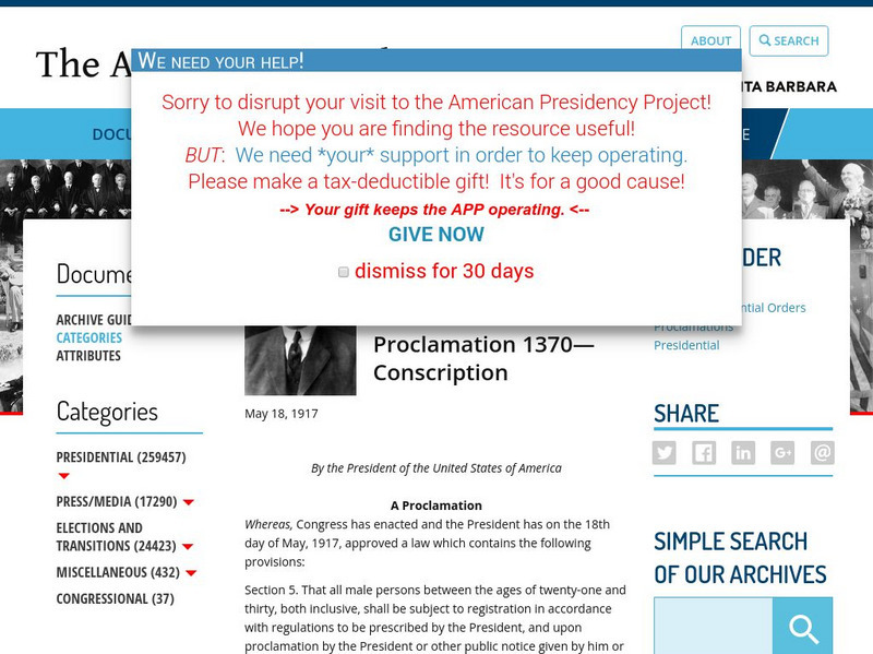 American Presidency Project: Wilson's Proclamation Establishing Conscription