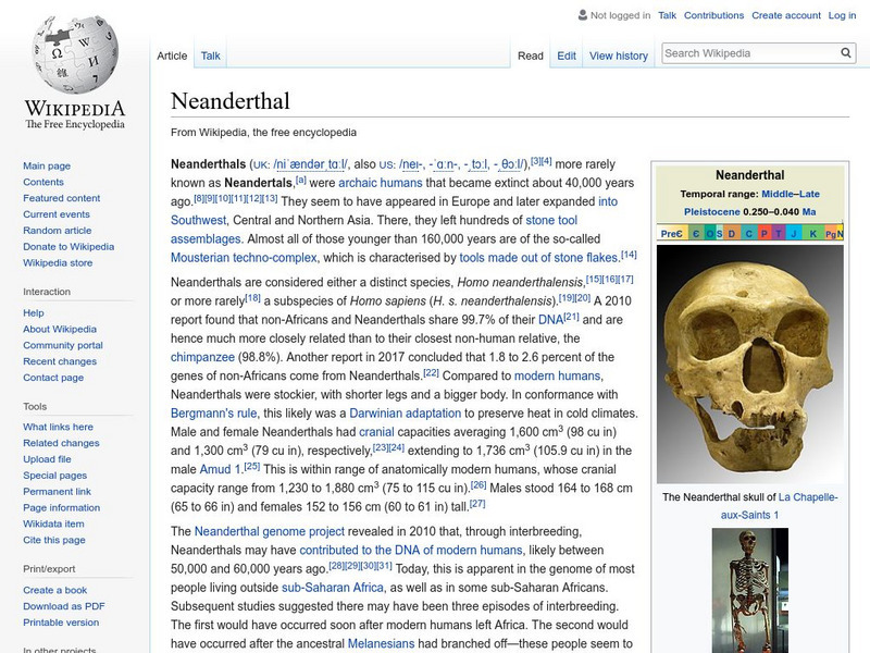 A detailed discussion of Neanderthals or Homo neanderthalensis. The article covers everything we know about them, for example, their discovery, their habitat, their genome, how they behaved, etc. Includes a timeline from when they were...