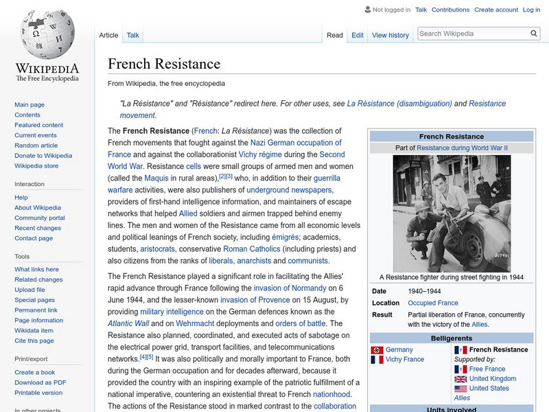 A history of the Resistance movement in France during World War II. It profiles some of the brave individuals involved in the movement.