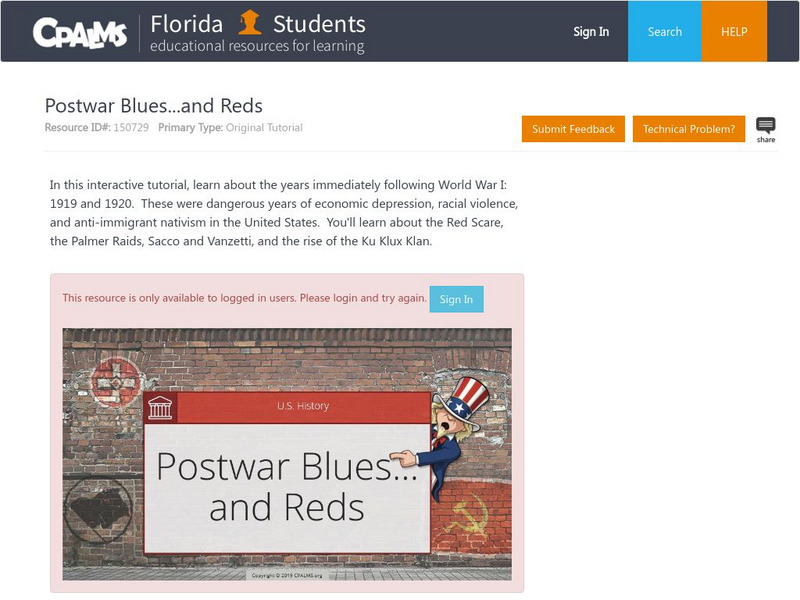 This tutorial looks at post-World War I America and the disturbing events that took place in 1919 and 1920, for example, racial discrimination, the KKK, backlash against immigrants, the Red Scare, etc. A PDF file of the tutorial is...