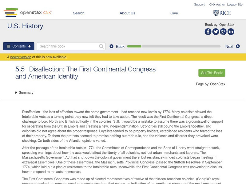 Open Stax: Disaffection: The First Continental Congress and American Identity