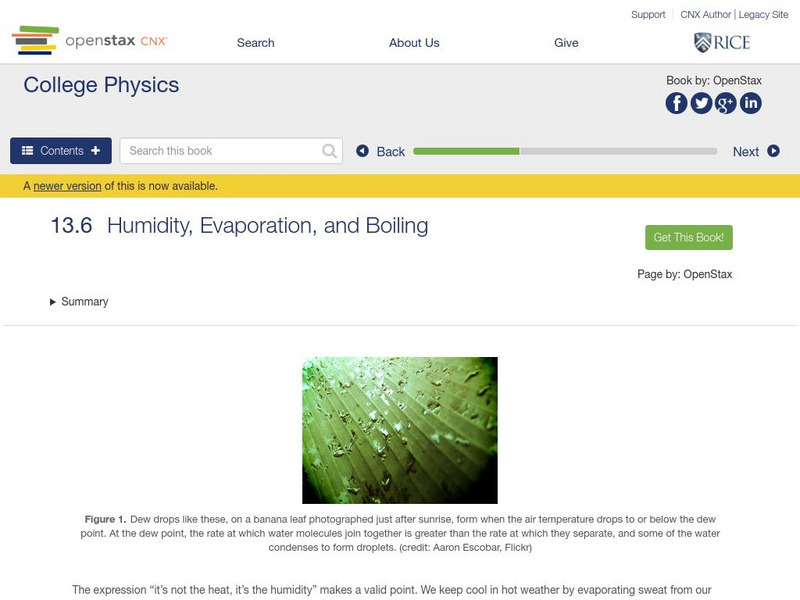 Open Stax: College Physics: Humidity, Evaporation, and Boiling