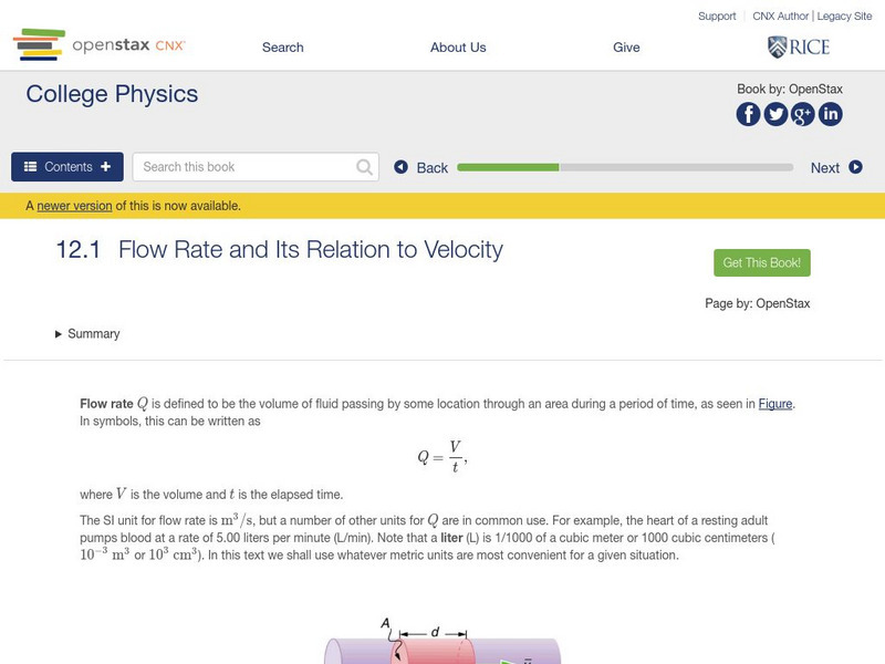 Open Stax: College Physics: Flow Rate and Its Relation to Velocity