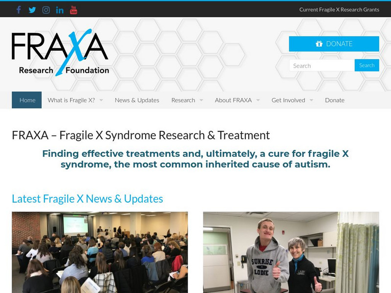FRAXA is an organization started by parents in 1994 to support and encourage scientific research aimed at finding a cure for Fragile X, responsible for inherited mental impairment and autism. Access information on Fragile X Syndrome...