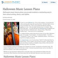 Halloween music lesson plans can provide students a motivating way to learn about writing, dance, and rhythm.