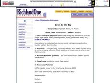Students work with rhyming words to add verses to a song. In this rhyming words lesson, students use rhyming words to add verses to Raffi's song, "Down by the Bay." They look for patterns and rhymes in the original verses before adding...
