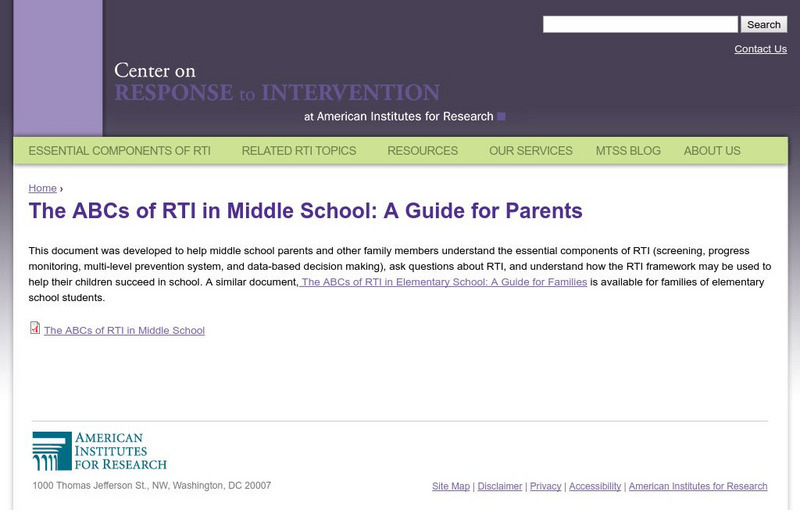Center on Response to Intervention: Rti in Middle School: A Guide for Parents