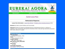High schoolers use ads from magazines to create data to be measured and apply the skill of estimation. They record the percentage of magazine ads that could be separated into different categories made by students through the use of...