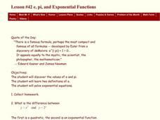 Students investigate e, pi and exponents. In this calculus lesson, students define constants and non-constants using, pi, e and exponents as an example. They use the TI to work the problems in this lesson.