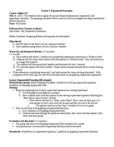 Students write equations for different functions. In this algebra lesson, students observe data and find the function that goes along with that data. The identify the line of best fit.