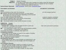 Junior geometers use hands-on manipulatives to explore and describe the properties and attributes of a fundamental polygon, the triangle. They learn different kinds of angles and their measurements. This well-written lesson plan provides...