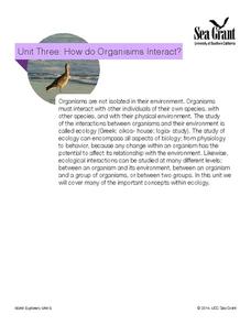 Examine how organisms interact through a hands-on experience. Learners study population dynamics and distribution during an informative five-lesson unit. The focus is on the ocean environment and the organisms within it.