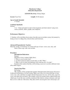 Third graders, in groups, complete a science lab in which they perform a blind taste test on eight different foods--some sweet, sour, salty, and bitter. They determine which parts of the tongue "taste" which kinds of foods. they record...