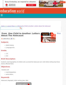 Students read biographies of students who survived the Holocaust and write letters describing the effects of those stories. They select one biography and write a letter to that child, telling how the biography affected him or her.