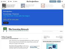 Students complete literary analysis for modern fables or urban legends. In this modern fables instructional activity, students listen to an urban legend and discuss it. Students then research urban legends online and write their own...