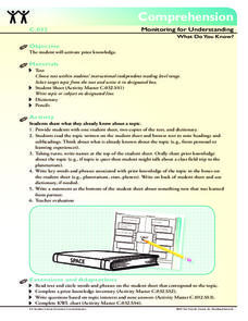 Comprehension: Monitoring for Understanding, What Do You Know?