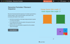 Explore the building blocks of the Fibonacci Sequence. Given the lengths of sides of squares, pupils deduce the pattern to determine the lengths of two more squares. Learners continue to work with recursive formulas to generate numerical...