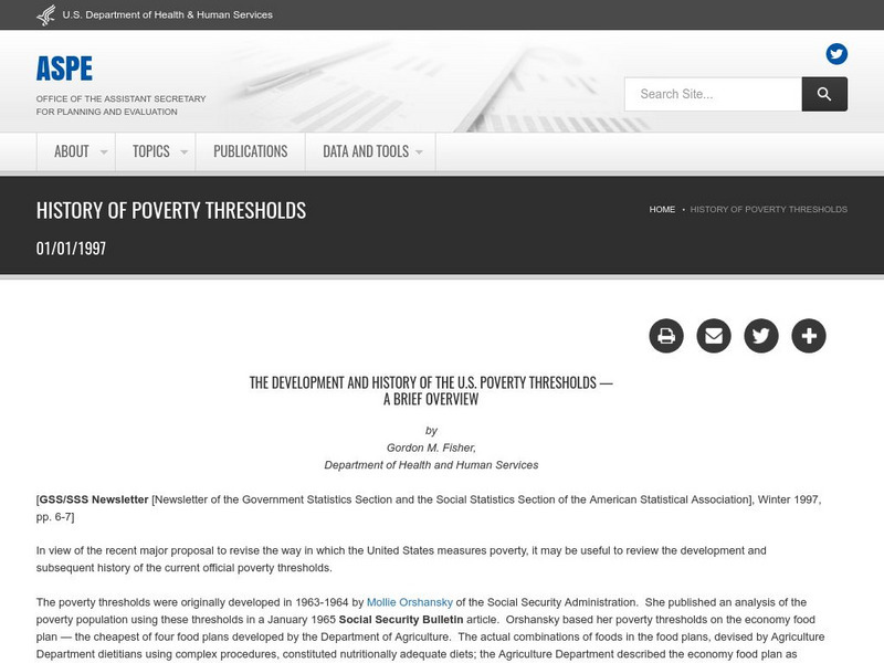 Health & Human Services: Development and History of u.s. Poverty Thresholds