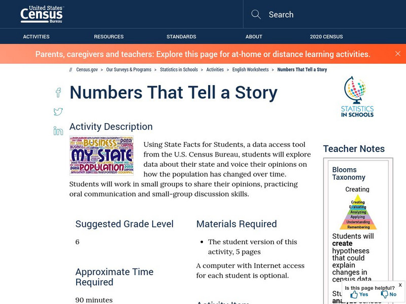 Using State Facts for Students, a data access tool from the U.S. Census Bureau, students will explore data about their state and voice their opinions on how the population has changed over time. Students will work in small groups to...