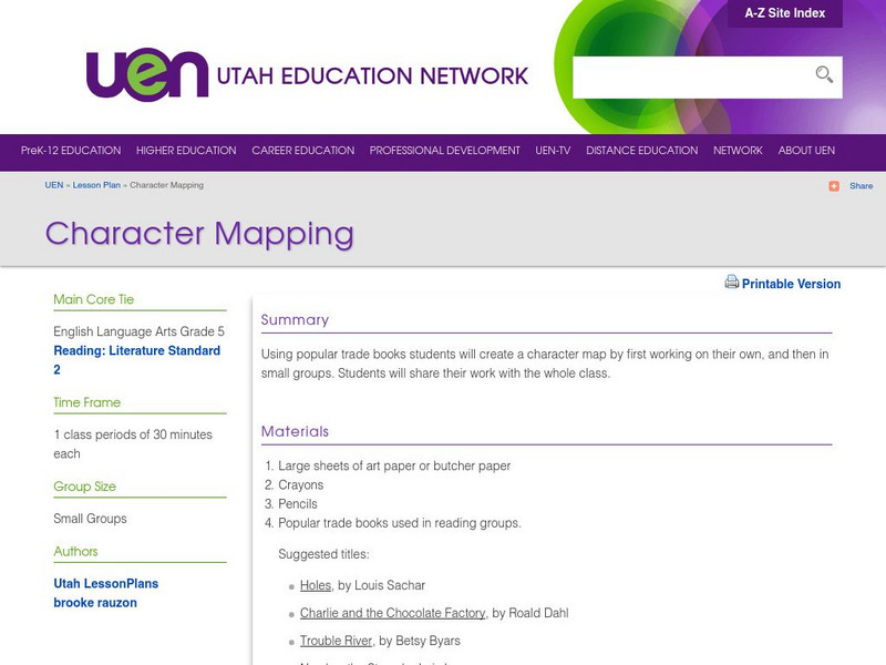 Students discuss character traits, and complete a character map and a Venn diagram for selected characters in their assigned text.