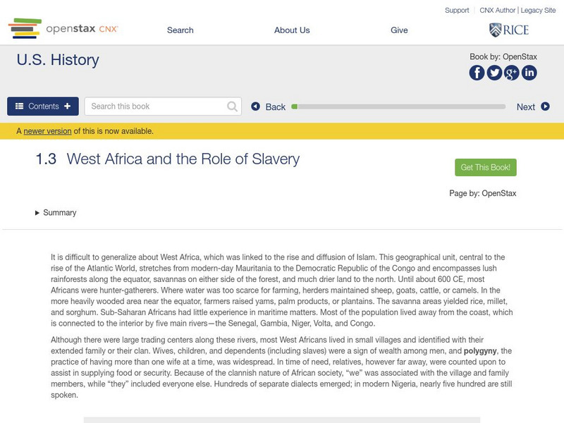Open Stax: West Africa and the Role of Slavery